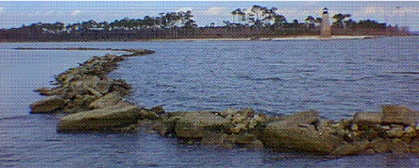 The latest effort is to build a breakwater of concrete rubble seaward of the lighthouse and later backfill 31 Acres with 355,000 cubic yards of sand. Mississippi Gulf Fishing Banks, Inc. (MGFB) is a non-profit organization experienced in building fishing reefs using concrete rubble. MGFB agreed to construct the initial portion of the breakwater during the Summer of 1997 utilizing Tidelands Funds and it's contractors, Borries Construction and King Marine Services. MGFB contracts King Marine on an annual basis to provide a spotter boat and supervise all of it's reef construction efforts throughout the year. Borries provided the Tug/Barge and loading/unloading of the concrete rubble for this project.