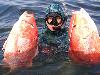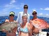 Offshore Fishing - You pay all the expenses and allow me to Scuba Dive I will take you. Commonly this is 100 gallons of Fuel and a 150 pounds of Ice plus some tackle, food, and water. A tip as well if you want a web page gallery like you see when clicking on the thumbnails above plus a Facebook Album to share. A Common Range is $400-$800. Split this 4-ways for 4 persons and it's $100-$200 per person. What a Deal! No minimum number of persons, but I may join other fishermen to your trip - up to four persons. This means you don't have to worry about getting your buddy's to comit. If you want to go fishing, just book yourself. I can legally take up to 6 persons, but it works much better if kept to four persons or less. If you have children 12 years or younger, please bring them a life jacket that fits them properly. They are required by law to wear it while underway. Fuel is billed at current national average for mid-grade and measured by a floscan. My Yamaha 4-Stroke Engine is as economical as they get, but Trip Fuel can range from 25 to 130 gallons depending on where you want to fish. View the trips by clicking the above thumbnails and you can read in the report how much we burned on that trip. |