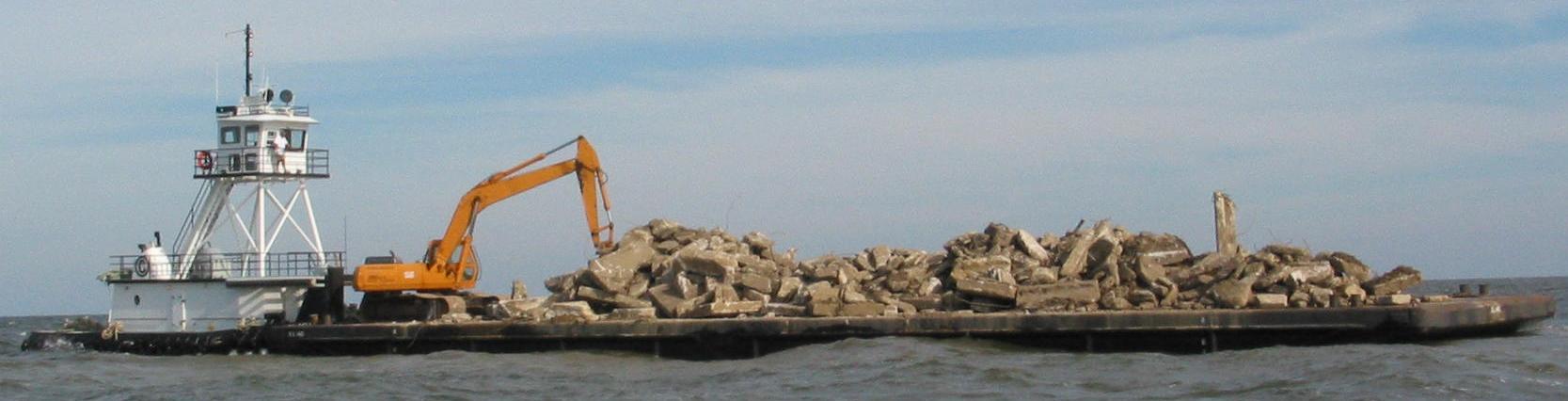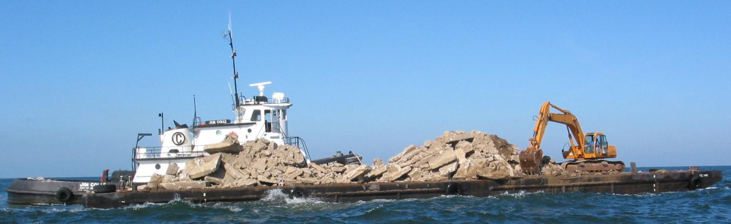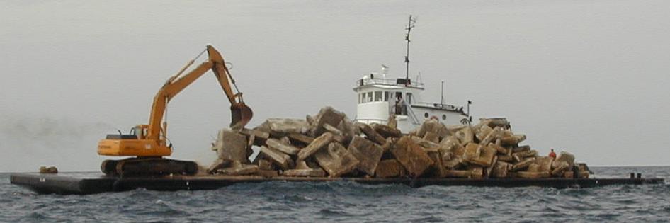 Efforts to clear out the seaway staging property of concrete rubble continue. Due to increased work load created by this season's Hurricanes, Vice Construction turned over all Tug operations to Colle Towing. PRIMOFISH.COM provided spotter boat operations. Rubble was deployed in FH-2 on October 25 & November 8. More Rubble was deployed in FH-11 on October 30 and 31. Details of the deployments are shown below.