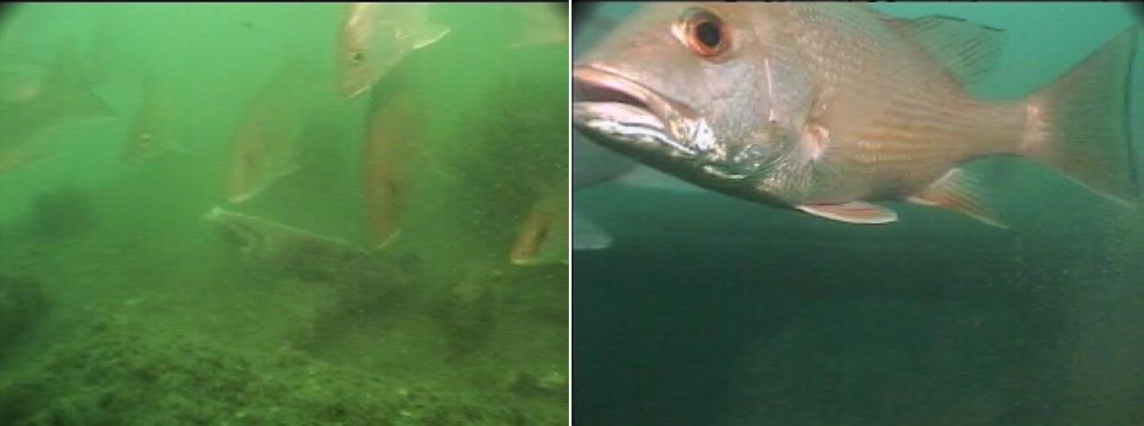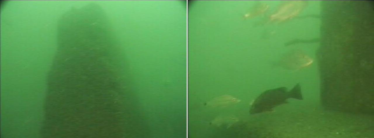 Following the rubble dive and enroute to the Chicken Coop Towers, it was decided to stop and take some video of this APC in FH-2. Fish observations included Red Snapper (50-75/1-3lbs), Triggerfish (20-25/1-2lbs.), Mangrove Snapper (6-8/1-3lbs.), and Tom Tates (10-15). The reef is progressing well, with encrustation beginning and the fish are freely swimming in and out of the structure. Visibility was not great (5-10 feet), but better than previous attempts of getting video footage.