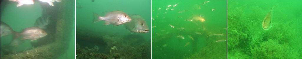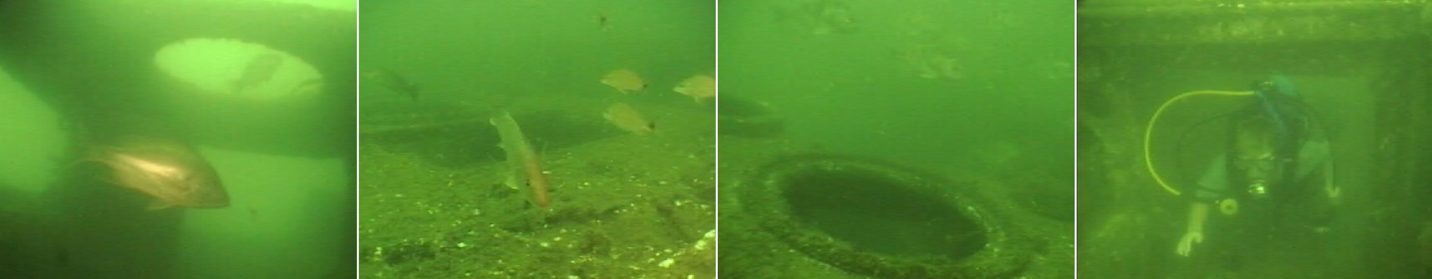 It was desired to get observations and video of some of the armored personnel carriers (APC) and the Casino Magic Barge. Upon arrival a boat was already crowding the barge so a nearby APC was visited first. This APC is located at 30°03.119N/88°36.541W within a field of scattered APCs to the west of the barge. It is identified as 316F1/APC9D on the deployment report. It was hoped to visit 3 of them and possibly tie a line between them to aide future studies, but limited visibility hampered that effort. The year and a half old reef showed to be progressing nicely. Fish observed included Red Snapper (75-100/1-3lbs.), Sheepshead (4-6/1-5lbs.), Triggerfish (2/1-2 lbs.), and TomTates. Marine fouling was taking hold with Urchins and Hi-Tops setting up residence. In fact, marine fouling was much more significant here when compared with the APCs on the deck of the nearby barge. The barge and its occupant APCs showed very little marine fouling taking hold for reasons unknown. One speculation may be electrolysis between the aluminum APC and the steel barge, but some studies may be warranted to determine the cause. The observations of the barge showed fewer concentrations of game fish but more mid-water baitfish, spadefish, hardtails, etc. The presence of the APCs on the deck did not seem to enhance the reef significantly, however, fish did make use of them when enticed to that location. Populations of fish did not seem to prefer that area over other parts of the barge when first approached. However, the wave attenuator structure that runs the length of the barge does seem to provide significant enhancement. Fish were observed making use of it’s presence and preferred to stay within it’s proximity. This barge was last visited on May 24, 2003. Comparative observations showed fewer red snapper, redfish, and mackerel. While growth was reportedly progressing well at that time, comparing pictures reveal little growth difference since that visit. Also noted was a significant amount of fouled fishing line, tackle, and lost anchors, indicating the higher utilization of this reef by fishermen and probably accounts for the decreased game fish sightings. In summary, the comparative observations of this trip indicate that it may be more productive to make individual reefs with future APC deployments rather than place them on a barge deck.
