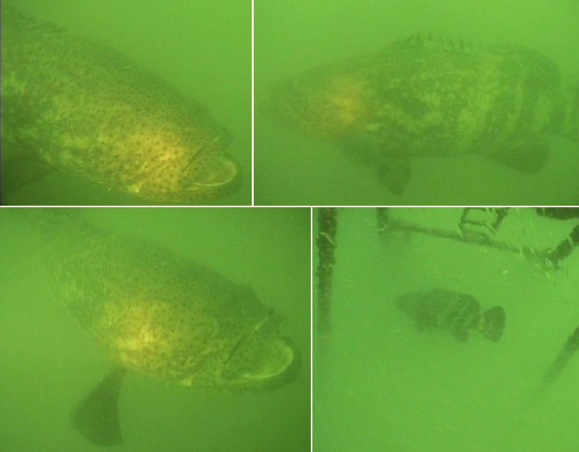 This large 150 foot Mississippi River Tugboat was sunk on May 20, 2005 in the southeast corner of FH-13 in about 88 feet of water. The observations on August 7 show this 3 month old reef is already collecting some game fish. A June 30 visit showed no game fish, but lots of bait fish like cigar minnows. This visit revealed several Gag Grouper (8-12/4-15 lbs.), Red Snapper (25-50/1-3 lbs.)(1/15-20 lbs.), and a few vermillion snapper. Spadefish, Blue Runners, a school of about a dozen Amberjack, and Mackerel were also sighted. The wheelhouse had been cut off prior to sinking and produced a deck with corridors forming a maze which the grouper seem to like. A minimum depth reading of 66 feet was taken.