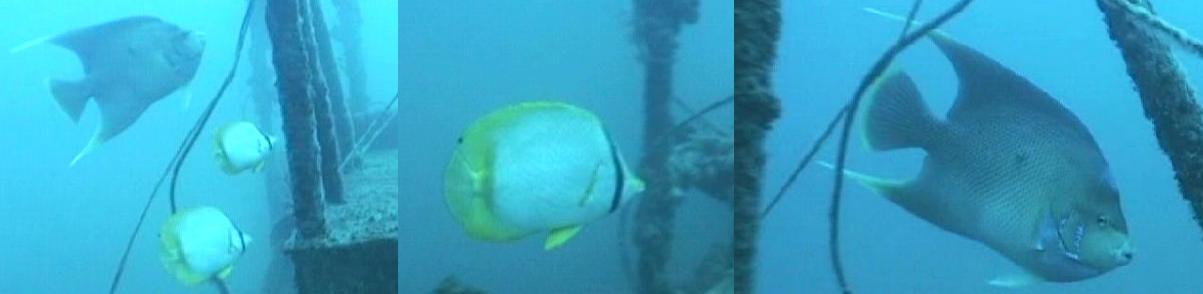 This 120' X 35' X 35' derelict crew quarter structure was deployed by Rowan Drilling Company on November 1, 1993 while the "Perfect Storm" was causing havoc in the Northeast. Sitting in 128-130 feet of water, this structure rises to a depth of about 96 feet providing an excellent reef for Amberjack, Grouper, and Snapper. This visit revealed that the reef is still performing quite well. Some of the walls have deteriorated away, but this actually has enhanced the reef as past observations have shown fish like open walls to swim thru. Several tropical fish have taken residence including a large French Angel, a pair of large Spot Fin Butterflies, and a half dozen or more Blue Angels. Other fish observations included Vermillion Snapper (75-100), Red Snapper (100-125/1-4 lbs) (4-6/10-20 lbs.), Triggerfish (6-12), Amberjack (5-8/10-30 lbs.), Mangrove Snapper (4-6/1-3 lbs.), Scamp (3/1-4 lbs.), and Gag Grouper (4-6/2-8 lbs.). Amberjack sightings are much fewer than have been seen in the past, but this has been typical this year throughout the Gulf. A couple years back marked record sightings of Amberjack. The structure is doing well and does not show much scouring into the bottom as has been seen with Vessels.