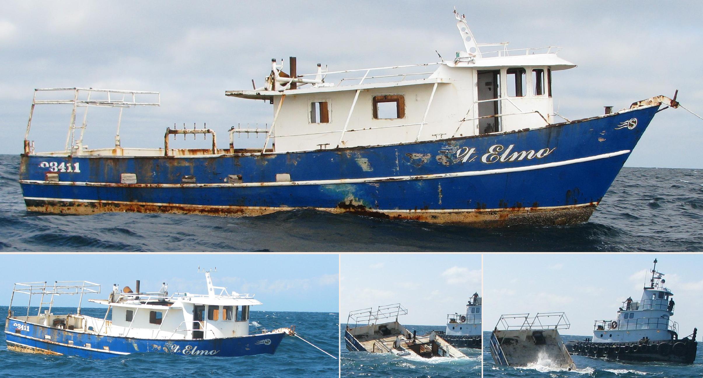 This 70' Steel Hull Shrimp Boat washed ashore in Pass Christian Harbor during Hurricane Gustav. The Harbor had a lien on the Vessel and somehow obtained ownership and donated it to the DMR. The DMR Derelict Vessel Program paid 100% to recover the Vessel, environmentally clean it, and deploy it in FH-2. It sank at about 1:25PM in about 58 feet of water in FH-2 with about 14 feet of relief off the bottom.
