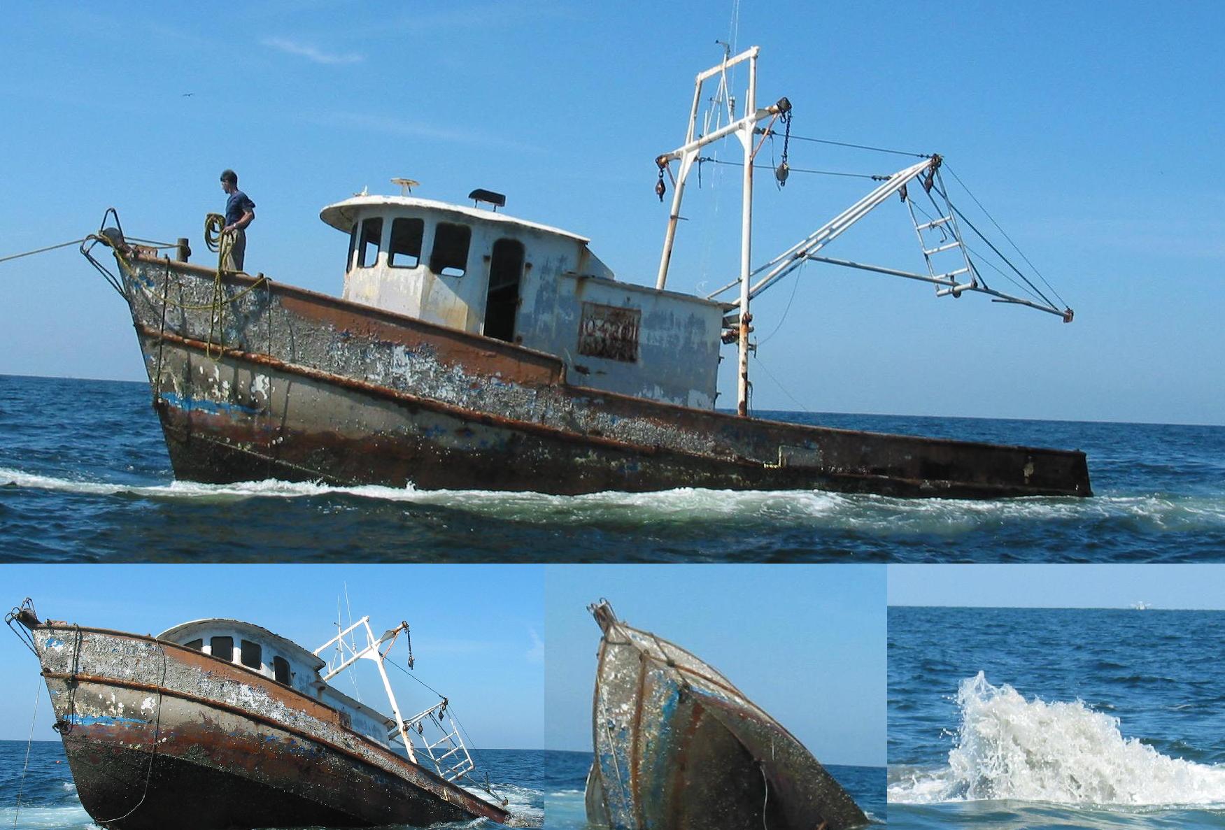 This 48' X 12' Steel Hull Utility Vessel was washed up on Chevron property by Hurricane George in 1998. Hurricane Kartina moved the Vessel further up into Chevron property in 2005. Chevron contacted the Mississippi Derelect Vessel program to remove the unclaimed boat. After public notices and a court order, the Vessel was removed, cleaned, and deployed in FH-3 (Shallow Liberty Ship Site) on May 28, 2009, 1:18PM, at the above coordinates. She appeared to land upright in 45 feet of water with a clearance of about 40 feet with the bow facing in a generally West direction. Weather conditions were relatively calm and flat with a slight current running from West to East.