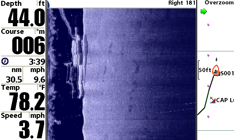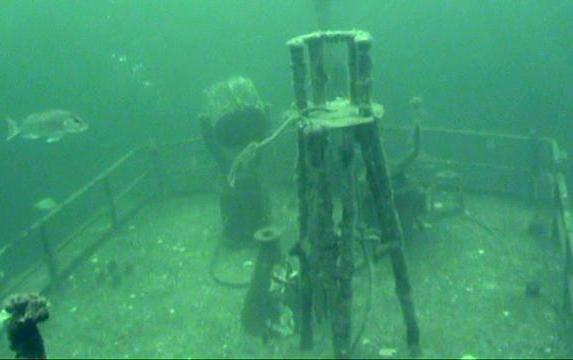 This 145' River Tug Boat is sitting upright in about 86' of water within FH-13. Initially a water clearance of 49 feet was recorded at the top of the Radar Antenna, but now the Radar Antenna has come off it’s mount and lies on the port stern corner of the roof of the Wheel House. A minimum depth of 52 feet was recorded and comparisons of current depth measurements with those taken in May 2008 indicated no changes. Fish Observations included Red Snapper (1-12lbs./50-75), Gag Grouper (1-10lbs./15-20), Mangrove Snapper (1-3lbs./8-12), Trigger Fish (8-10), Sheepshead (1-5lbs./4-6). No tropicals were noted and only a few urchins were observed. Overall the Reef is doing nicely with a decent population of game fish.