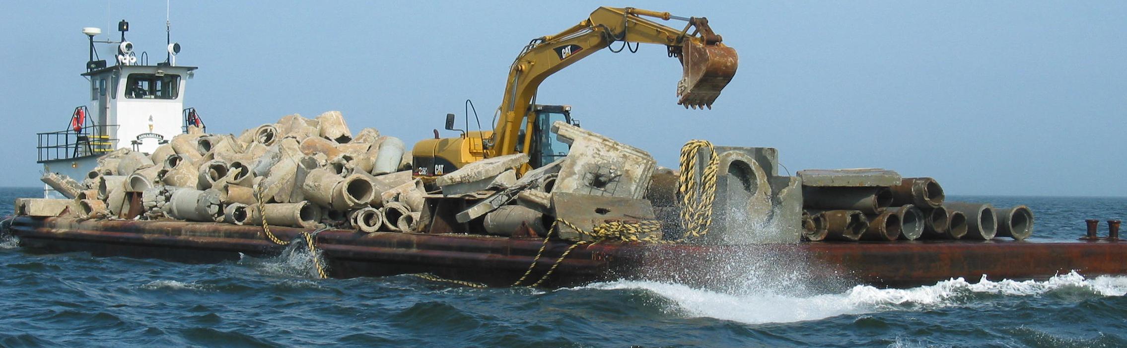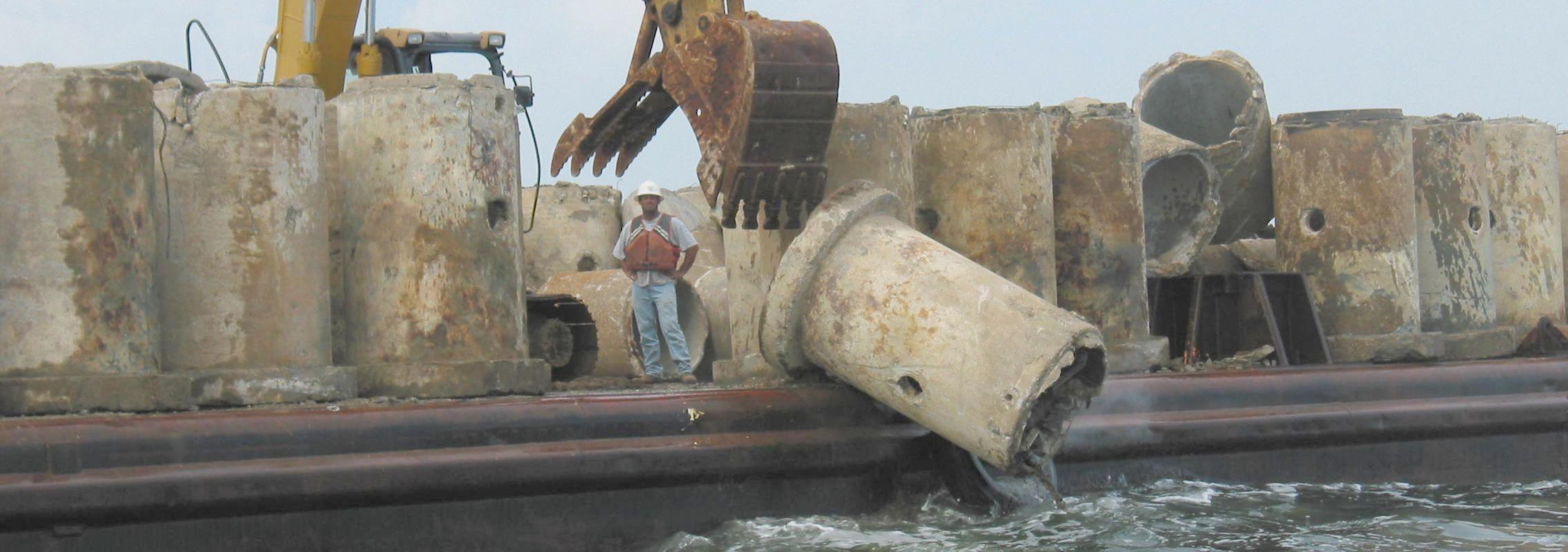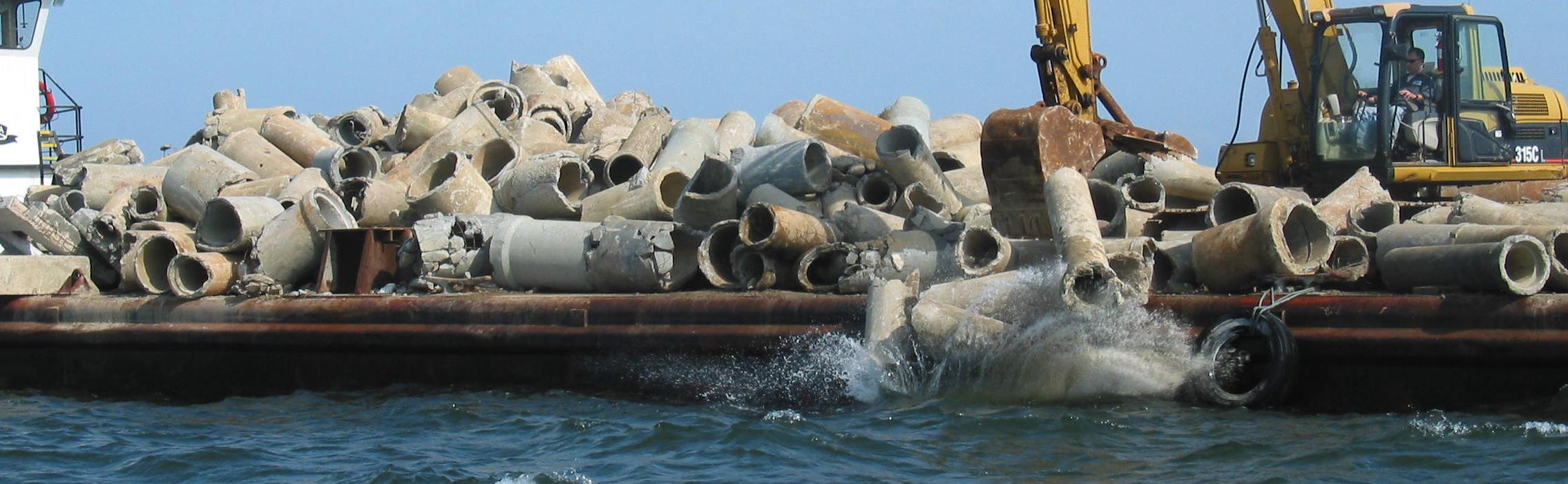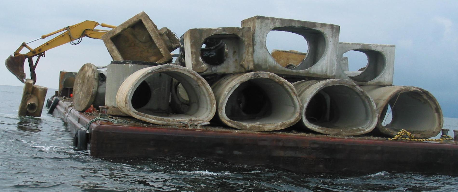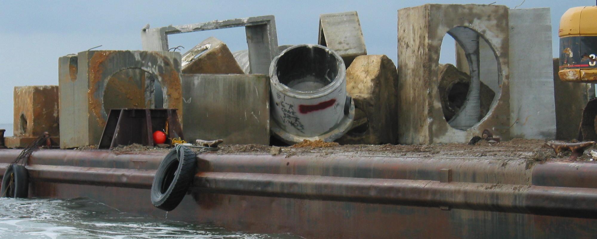 On October 12, a Barge Load of Culverts was deployed in FH-2 near the Fireboat Reef. The surrounding depth was 56 feet. The Tide was 0.2 feet. Winds were from the SE at 14 knots.