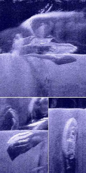 This Steel Hull Shrimp Boat was deployed a little North of the Casino Magic Barge at the Southeast end of FH-1. The Surrounding depth was 68' with a minimum clearance of 45' recorded. It appears to have landed on its Starboard Side with the Bow facing South. This appears due to having much larger holes cut in the Bow than in the Stern causing it to fill much more quickly and sink with the Stern floating up. Winds were from the East @ 10 knots, current running 3 knots at 300°. Predicted Tide was 1.7 with a range from -0.5 @ 8:02P to 1.9 @ 9:32A.
