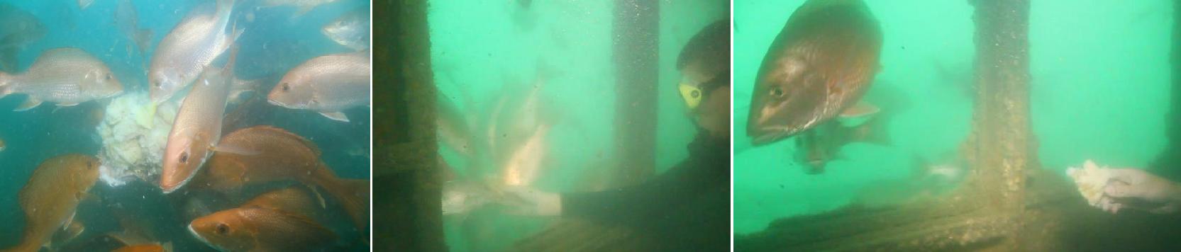 The dive on October 23 was made on the Great Wicomico Pogey Boat (517F13). This 175' Pogey Boat was donated by Omega Protein and deployed in 86' of water on November 24, 2009 at the South End of FH-13 (29°59.527'N / 88°30.610'W ). The Red Snapper population was still significant on this reef (100-150/2-20lbs.). Other fish sightings included Gag Grouper (2/8-10lbs.), Mangrove Snapper (2-4/2-3lbs.), Triggerfish (4-6), and Spadefish (25-30). The observations were significantly hampered by poor visibility. Due to the poor conditions of milky water and poor visibility throughout the water column, we aborted further work.