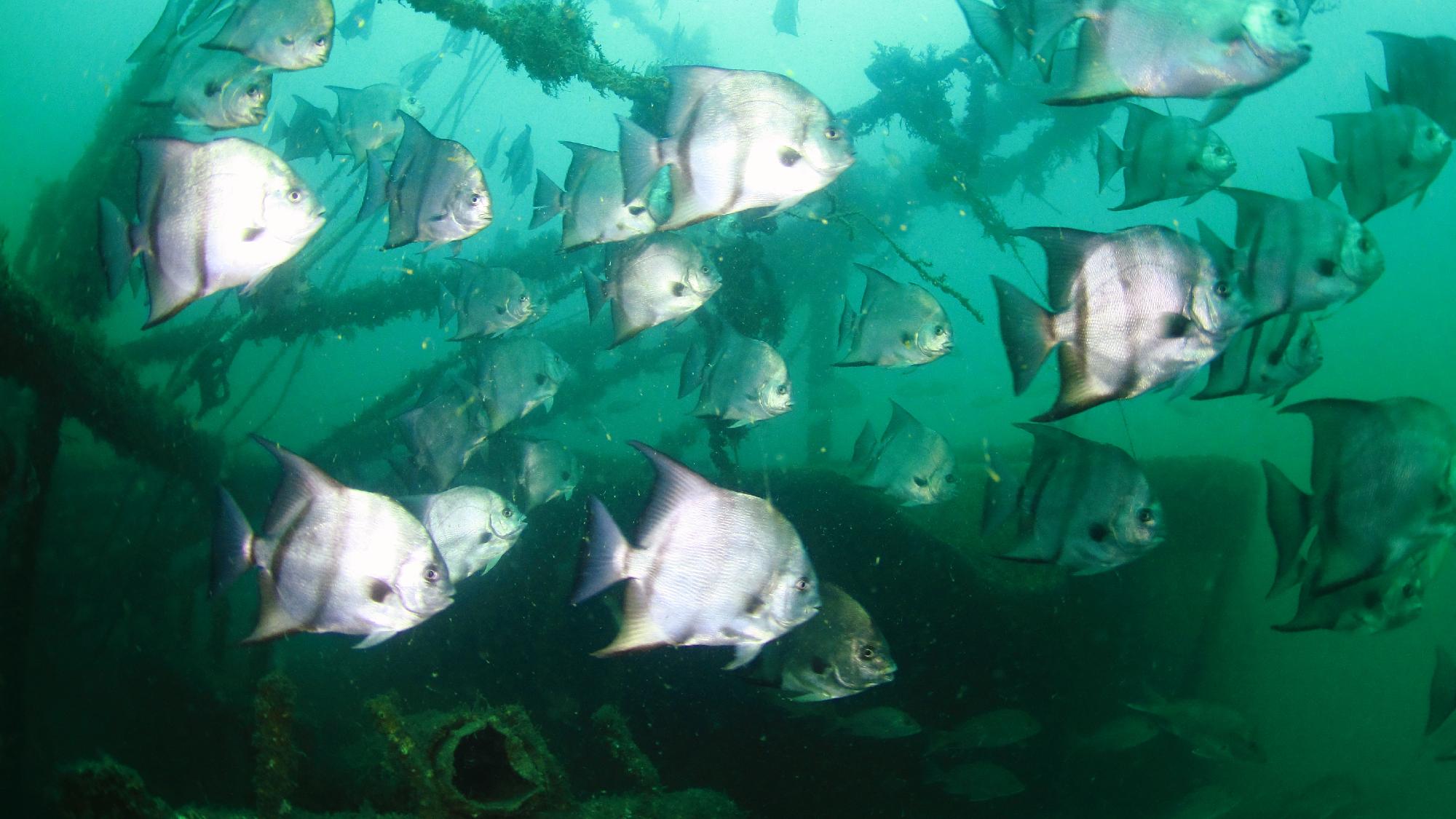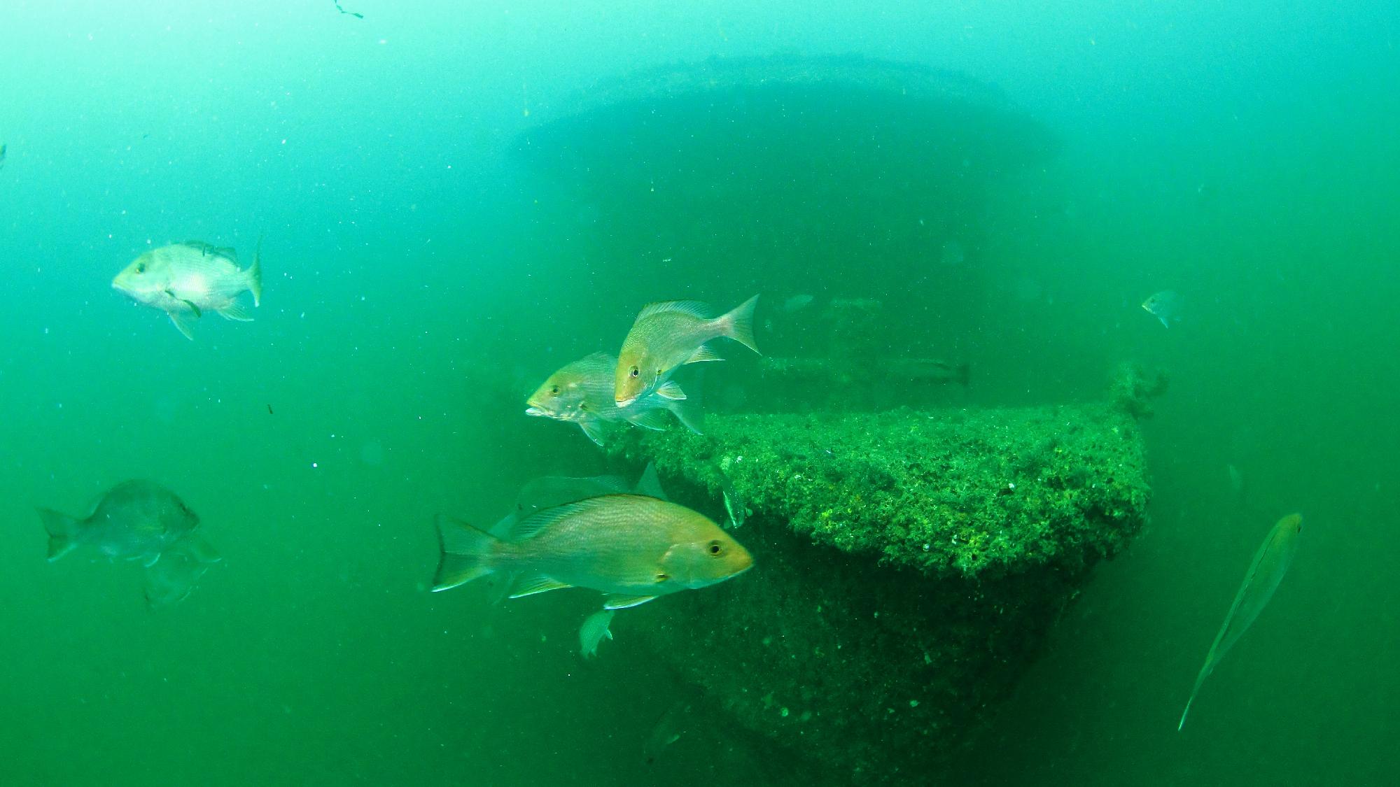 This 80' Shrimp Boat was deployed in about 76' of water within FH-13. Last month a marked decline of fish populations was reported. This month they seem to be making a come back. Fish observations included Spadefish (150-200), Red Snapper (125-150/1-6 lbs), Scamp Grouper (1/ 2lbs), Mangrove Snapper (15-20), Tomtates (50-75), Cocoa Damsels (3-6), and Soapfish (3-6). Soft Corals were observed and several Sea Cucumbers. Some measurements were taken, Bow 63' (compared to 59' last visit), Port and Starboard Stern Corners 73', Mast 59', and minimum depth 56 feet.